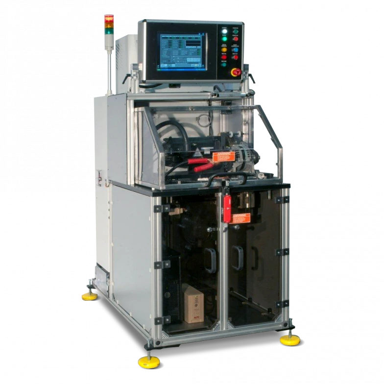 The CDT-150 automatically scans all diodes in the rectifier and measures each one of them separately. The full test takes 5-6 seconds to complete. The measured values are compared with preset limits and PASS or Fail is indicated, according to the results. The readings can be taken even with the stator attached to the rectifier. An audible beeb is heard when the diode or rectifier has passed the test. This testing unit can detect the direction of the diode and automatically reverse the test probes to provide proper measurement. The limits are fully programmable by the operator. The CDT-150 can also store specifications for popular rectifiers. Production fixtures are also available